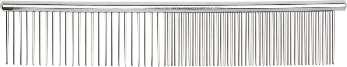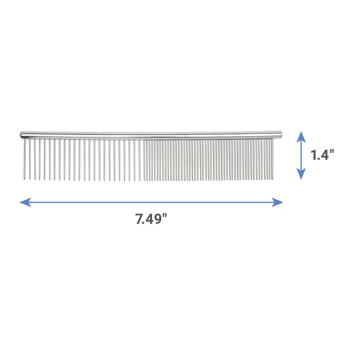 From Frisco by Chewy. The stainless-steel body and teeth of this comb help remove tangles, knots, mats, dirt and loose hair caught in your pet’s coat.